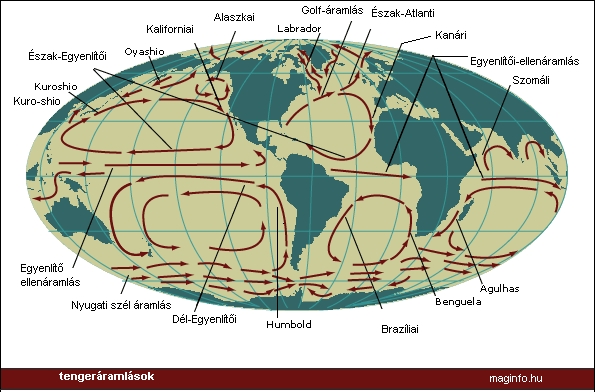 A víz hőmérsékletéből adódóan vannak hideg és meleg áramlatok.