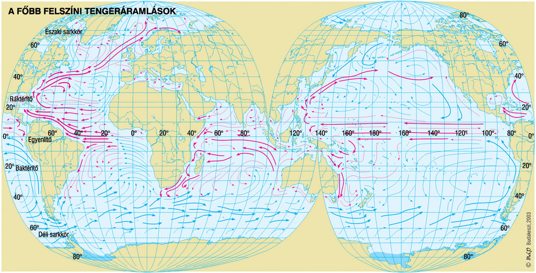 tengeráramlás: az állandó légáramlás miatt nagy víz-tömegek helyeződnek át nagy távolságokra. A tengeráramlat lehet hideg és meleg.